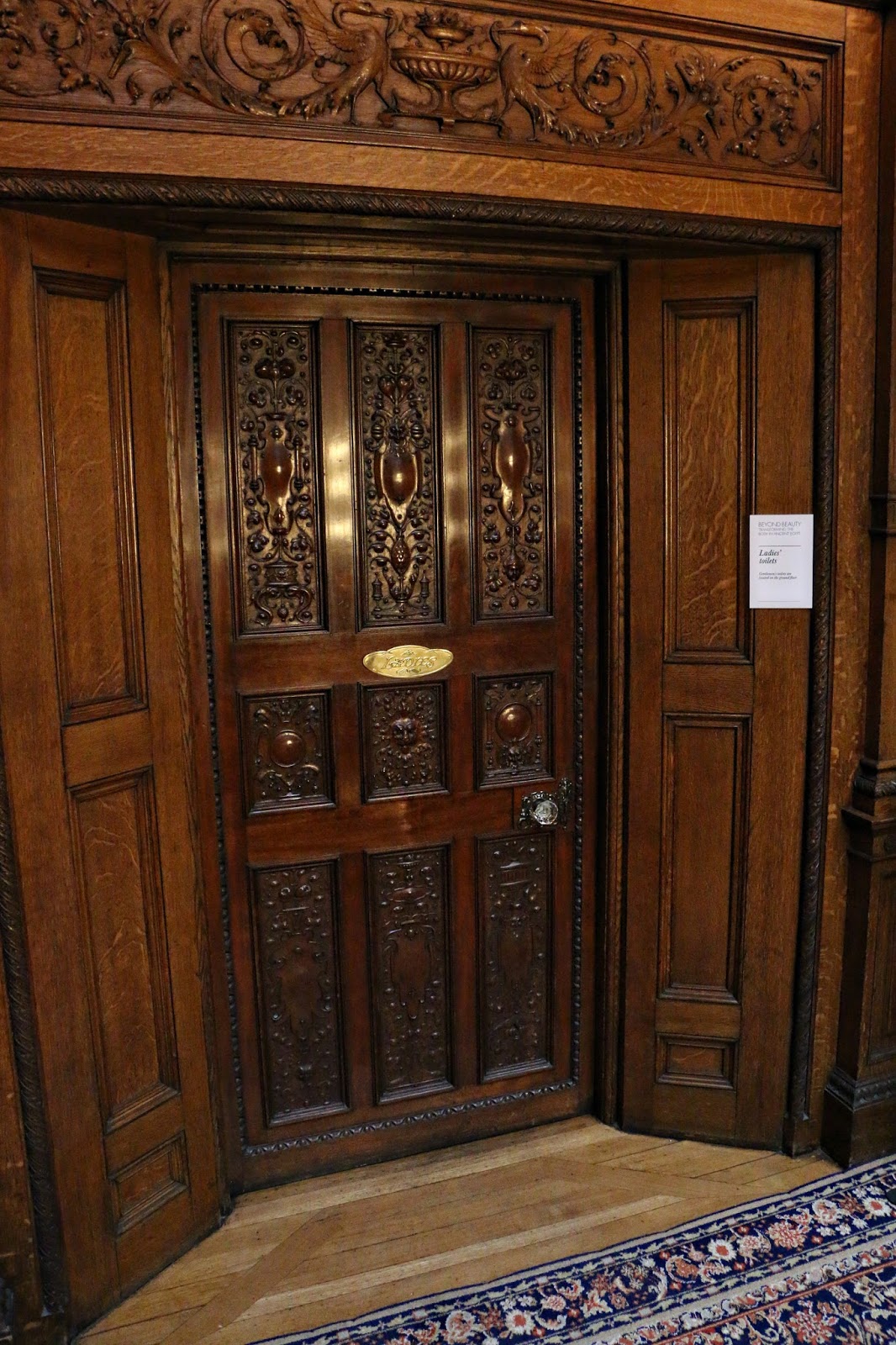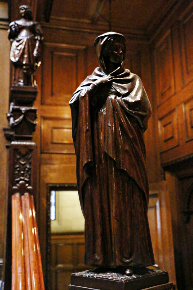 The main stairwell has this ridiculous ceiling and a frieze starring characters from Rip Van Winkle and Last of the Mohicans among others, as well as Shakespearean carved figures and other characters from both fiction and history. Anne Boleyn is there somewhere. The staircase has not one but SEVEN mahogany carvings of characters from Alexandre Dumas’s The Three Musketeers, allegedly Astor’s favourite novel.